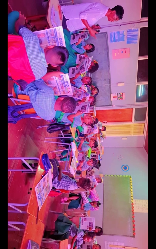 Er zijn twee grote 160 liter dozen met leesmateriaal naar Suriname verstuurd en aldaar ontvangen. Genoeg voor het hele schooljaar 2025/2026. Marlene Scholsberg heeft het materiaal bij pakketbedrijf Pico opgehaald en op 15 oktober heeft ze de leespakketten uitgedeeld op de deelnemende scholen, inclusief een roulatieschema. Rudy heeft nog meer materiaal verzameld zoals posters met leesteksten om in de klas op te hangen.